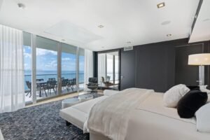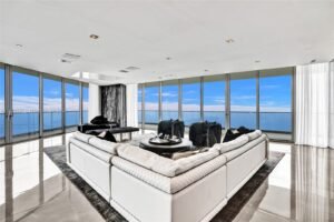 This spectacular home offers uninterrupted panoramic views of the ocean, intracoastal, and sparkling city skyline—framed by floor-to-ceiling glass walls and enhanced by spacious terraces, perfect for enjoying golden sunrises and serene sunsets.